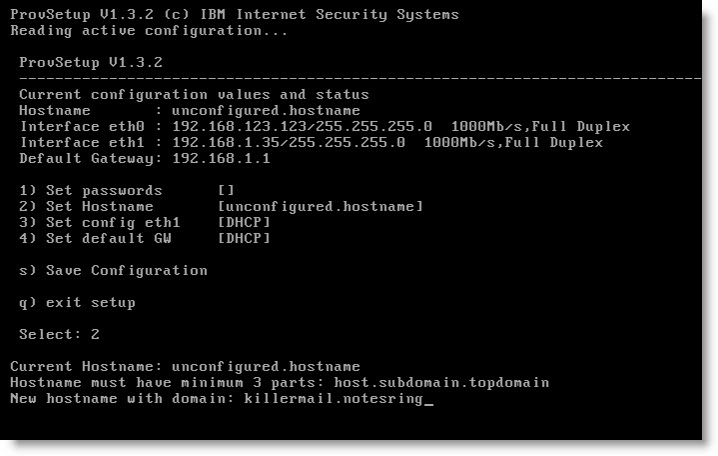 Configuramos la ip y el nombre del host de lotus protector
