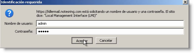 Como usuario y password introducimos admin