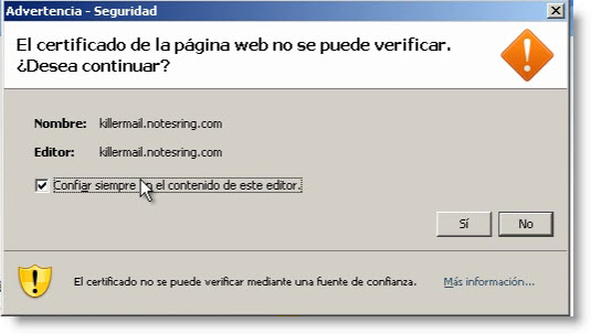 Pulsamos en Confirmar Excepción de Seguridad