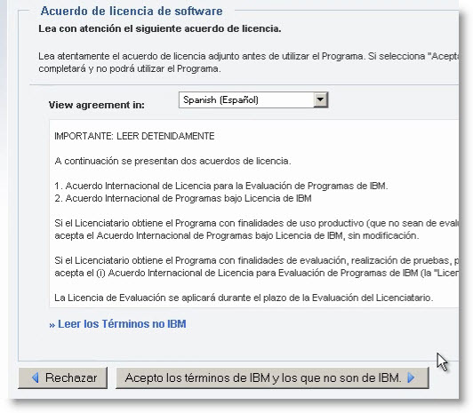 Pulse en Acepto los términos de IBM y los que no son de IBM