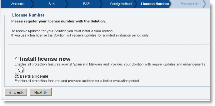 Seleccione use trial license si no tiene número de licencia.