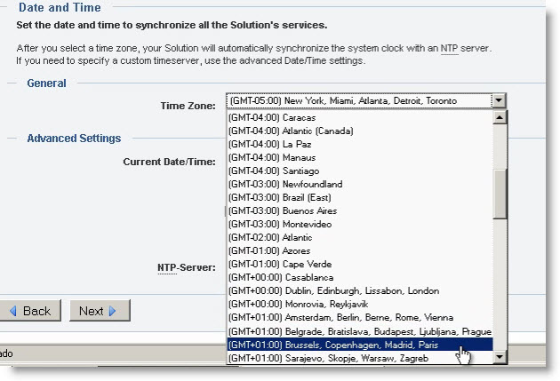 Configure la zona horaria de su país