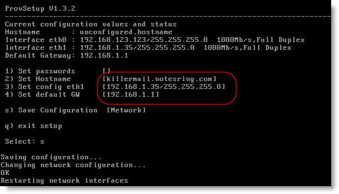 Configuramos la ip y el nombre del host de lotus protector