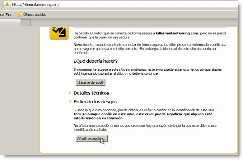 Pulsamos en Añadir Excepción
