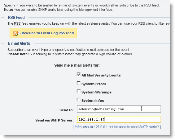 En notificaciones puede configurar que le envíe un correo en caso de que se produzca alguna alerta